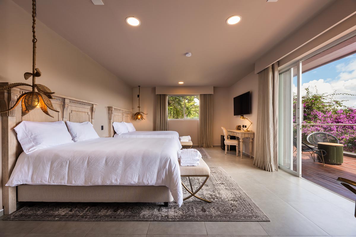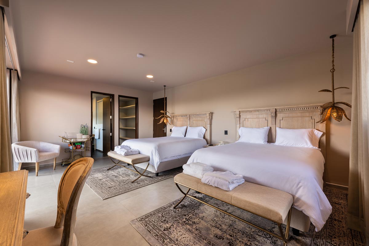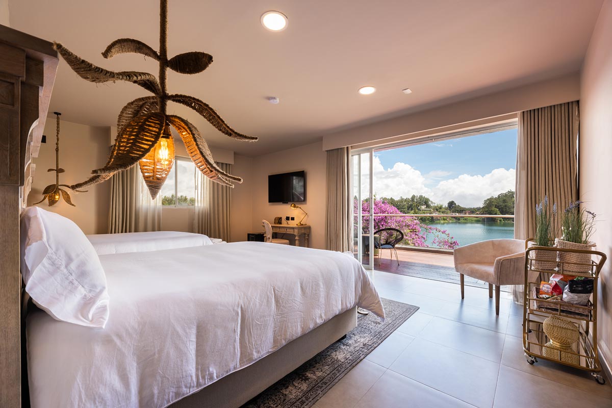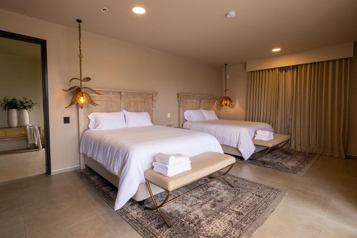 200 metros cuadrados, diseñada para ser completamente accesible y cómoda para ti. Esta habitación incluye dos amplias camas tipo King, dos baños independientes, un espacioso balcón con impresionante vista al embalse, jacuzzi, vestidor y una acogedora sala de estar.