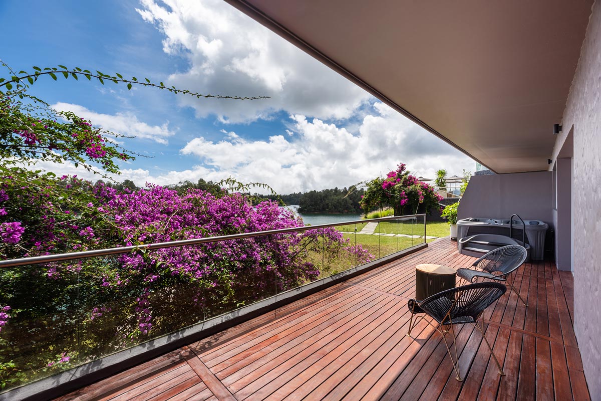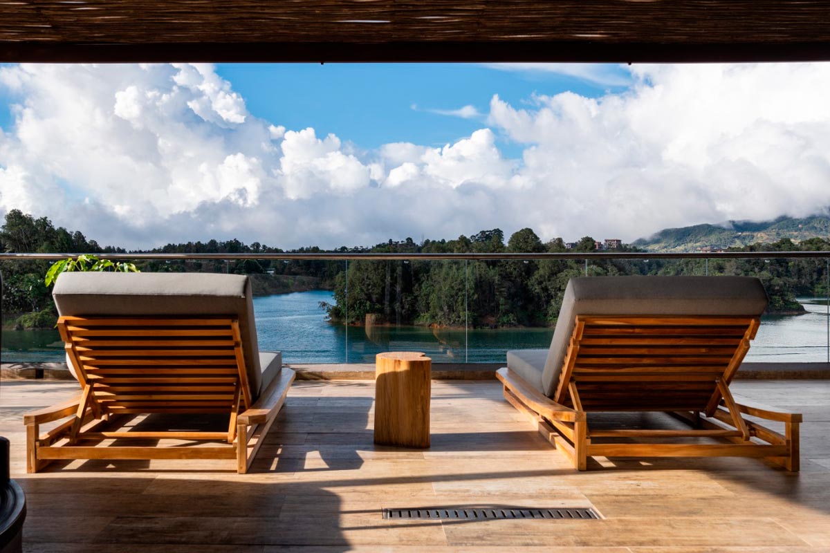 Smart TV, 2 Duchas cada uno, Escritorio, Wifi, Balcón, Zona social al aire libre, Minibar, Walk-in closet, Caja Fuerte, Sala de estar, Ventanales, Vista al embalse.