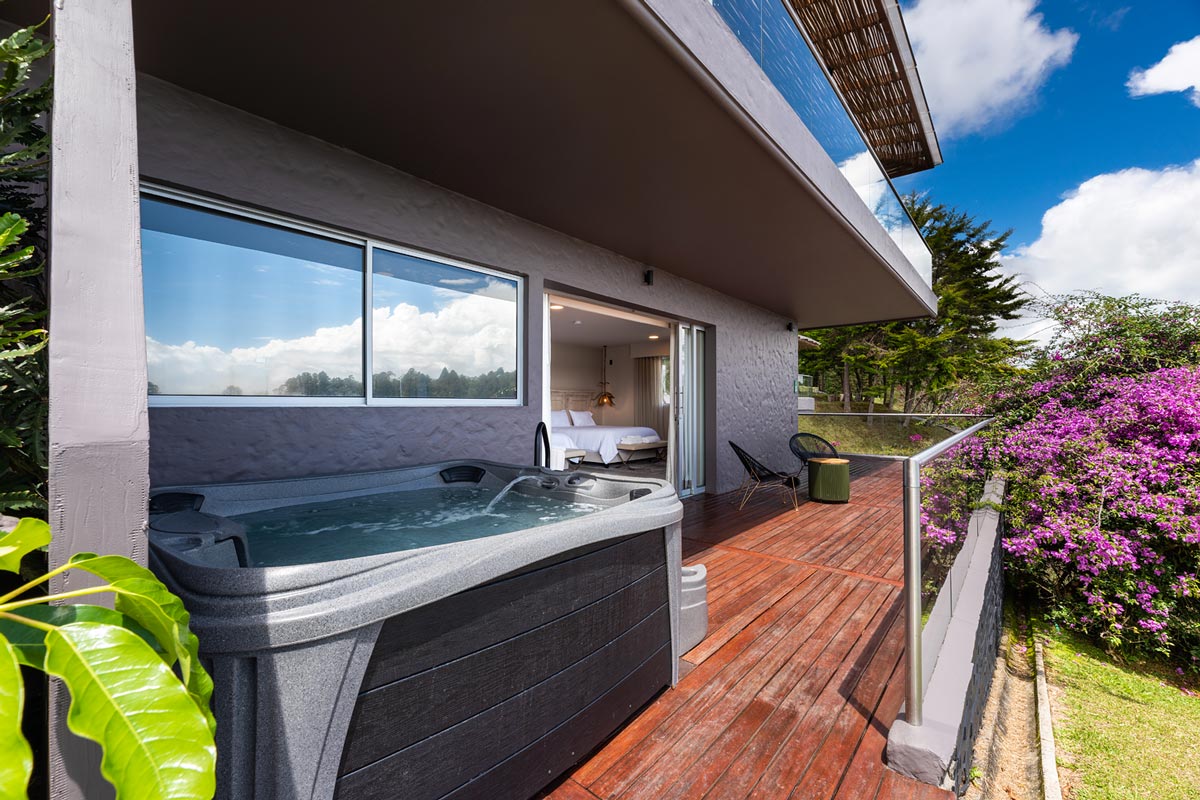 Jacuzzi, Smart TV, Escritorio, Zona social al aire libre, Ducha, Wifi, Balcón, Vista al embalse, Camas King, Minibar, Caja Fuerte, Ventanales, Walk-in closet, Camas Queen, Sala de estar, Vista al bosque.