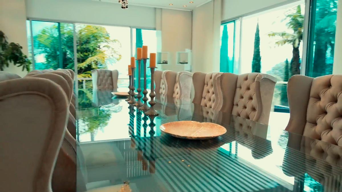 La villa cuenta con 5 amplias habitaciones y 6 baños, garantizando comodidad y espacio para todos tus invitados. Relájate en la sala de cine, refréscate en la piscina o disfruta de emocionantes partidos en la cancha de fútbol y básquetbol. Además, hay espacio para hasta 6 vehículos en nuestros garajes.